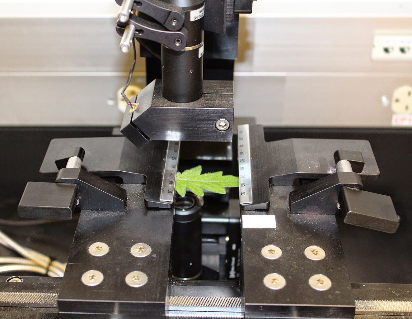 3D Dual confocal measurement system designed to map the thickness of tomato leafs with 1 um accuracy. This system was designed for a researcher who was attempting to determine the region of the genome responsible for controlling the drought resistance of the tomato plant. For this study, the thickness of approximately 10,000 tomato leaves had to be mapped within a period of approximately 2 weeks, requiring that the time to mount and measure each leaf needed to be on the order of 1-2 minutes. The system was successfully developed and used in the research, with the result that the regions of the genome influencing drought resistance were identified.